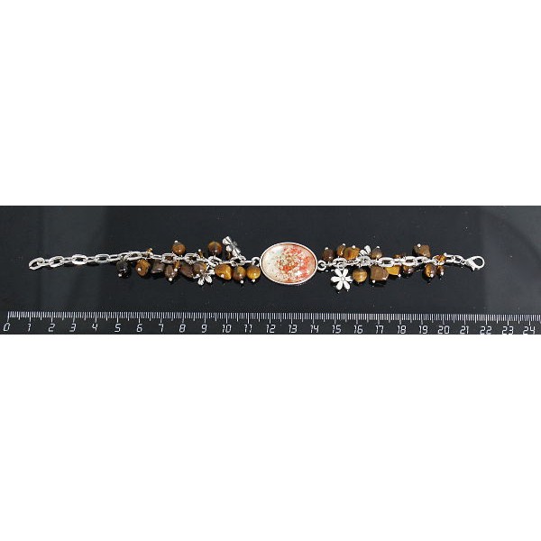Браслет с кабошоном из пластика "два цветка", овал 25х18мм, цвет красный, + шарики тигровый глаз