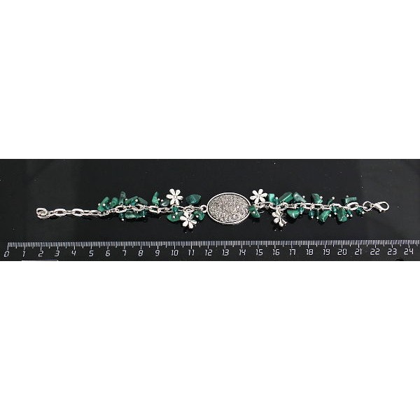 Браслет с кабошоном из пластика "щетка кристаллов", овал 25х18мм, цвет серебристый, + галтовка малахит