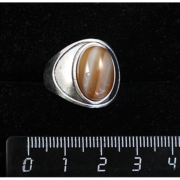Кольцо c агатом серо-коричневым, овал 14х10мм..