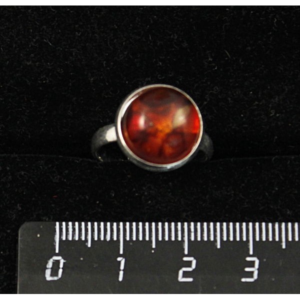 Кольцо с янтарём темным (кабошон-мозаика), круг 18..