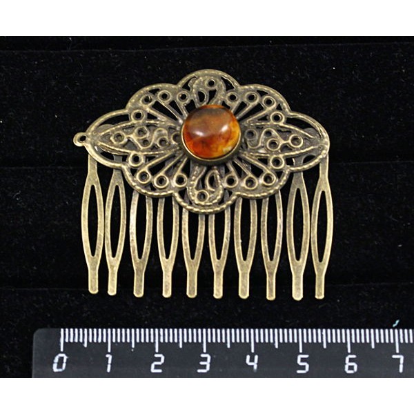 Заколка (зажим для волос) из янтаря темного, кабош..