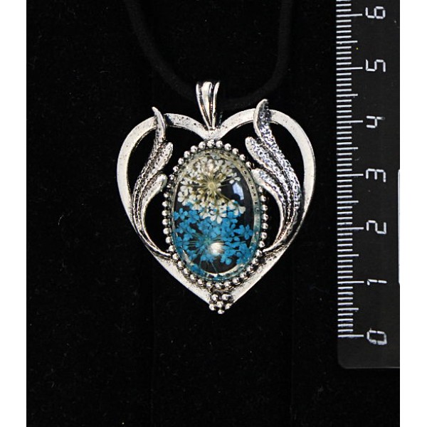 Кулон из крафтовой смолы, цвет голубой, кабошон "камея", овал 25х18мм, "сердце с крыльями"