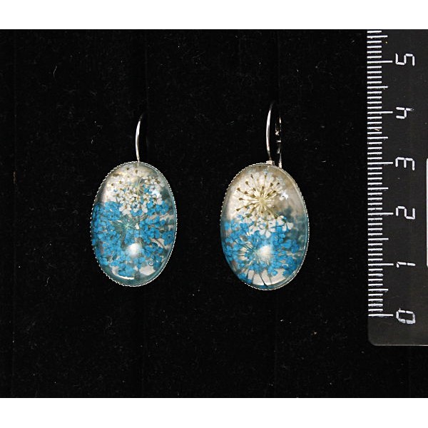 Серьги с кабошоном из пластика "два цветка", цвет морская волна, овал 25х18мм, оправа "медальон", швензы посеребрение