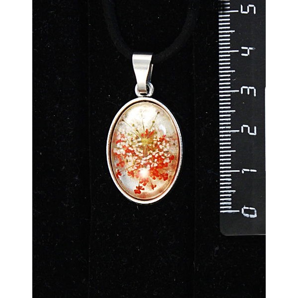 • Кулон c кабошоном из пластика "два цветка", цвет красный, простой овал 25х18мм