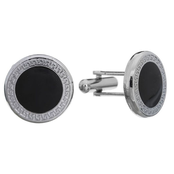 Запонки стальные "Классика" круг с эмалью, окантовка с орнаментом, цвет чёрный серебре
