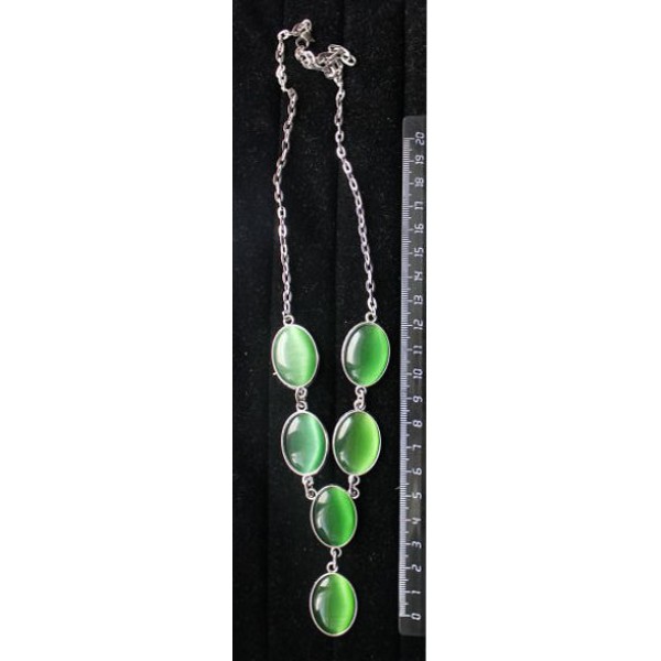 Колье из кошачьего глаза (синт.), цвет зелёный, "6 овалов", камень 25х18мм