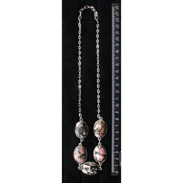 Колье из родонита, овалы 25х18мм, 5 камней, на цеп..