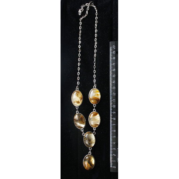 Колье из тигрового глаза, овалы 25х18мм, 5 камней, на цепочке