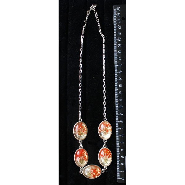 Колье с кабошоном из пластика "два цветка", цвет красный, "5 овалов", 25х18мм