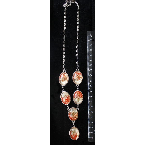 • Колье с кабошоном из пластика "два цветка", цвет красный, "6 овалов", 25х18мм