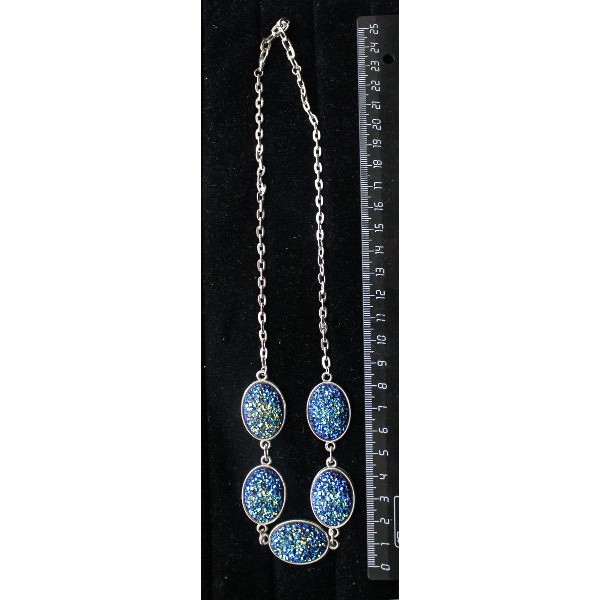 Колье с кабошоном из пластик "щетка кристаллов", цвет тёмно-синий, "5 овалов", 25х18мм
