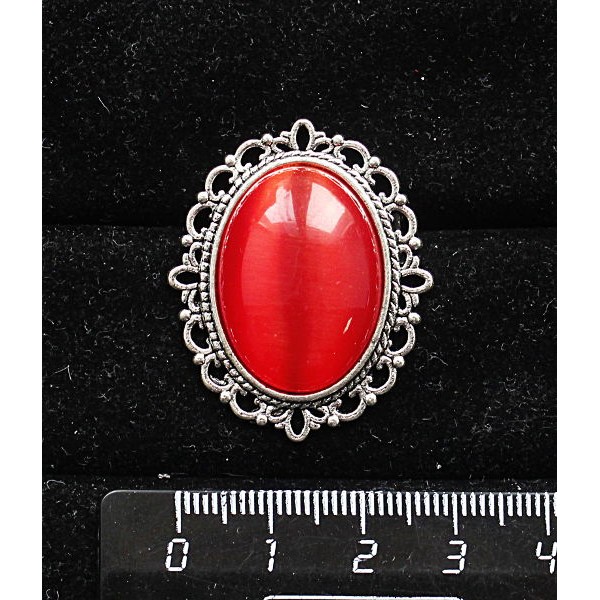 Кольцо с кошачьим глазом (синт.), цвет тёмно-оранжевый, овал 25х18мм, безразмерное (литая оправа)