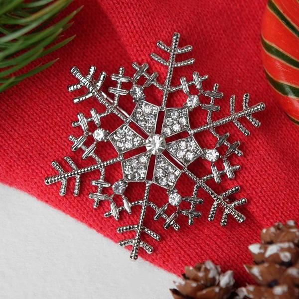 Брошь новогодняя "Снежинка" с сердцевиной, цвет белый, цвет серебристый