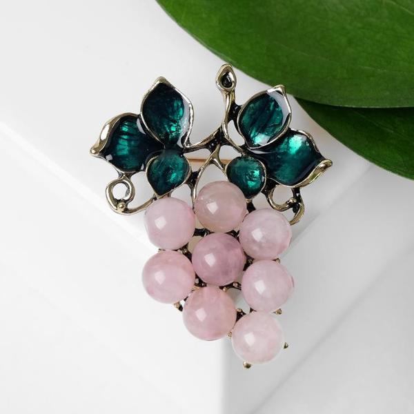 Брошь "Виноград" лоза кварца, цвет розово-зелёный, цвет золотистый