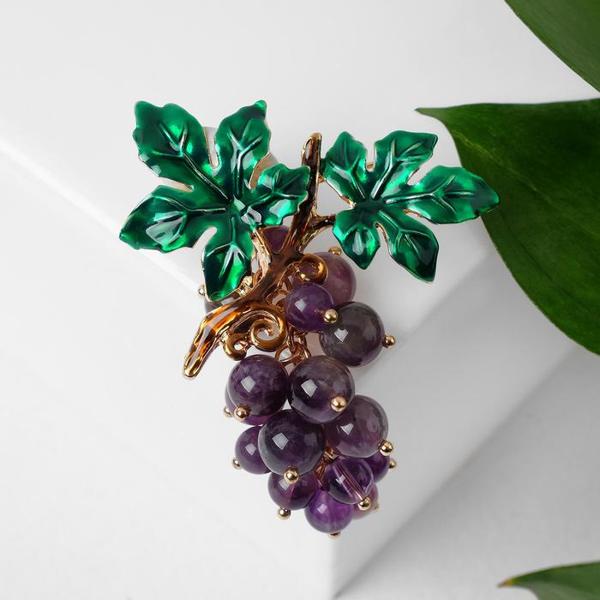 Брошь "Виноград" аметистовый, цветная, цвет золотистый