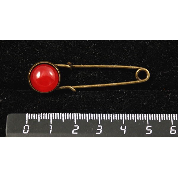 Брошь-булавка с агатом красным, (тонировка под коралл), круг 12мм, цвет бронза