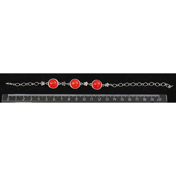 Браслет из агата красного, (тонировка под коралл), круг 12мм, 3 камня, на цепочке