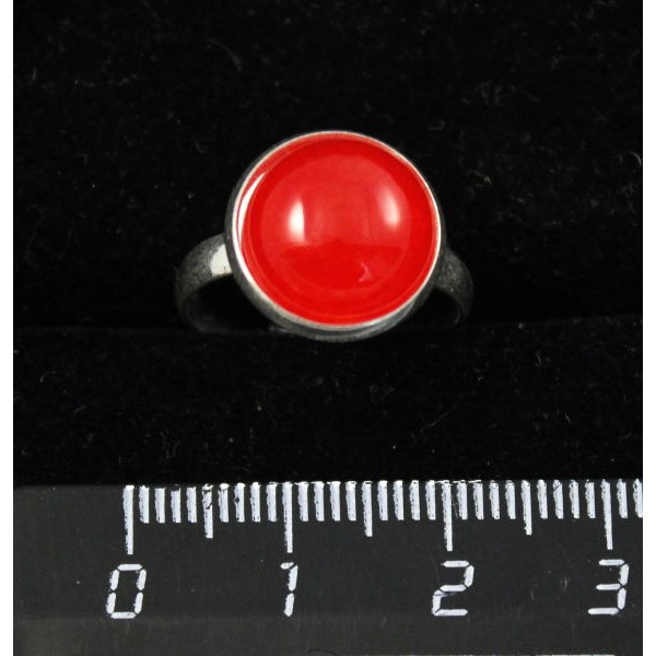 Кольцо c агатом красным, (тонировка под коралл), круг 12мм, безразмерное