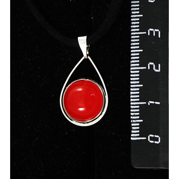 Кулон из агата красного, (тонировка под коралл), круг 12мм, "капелька"