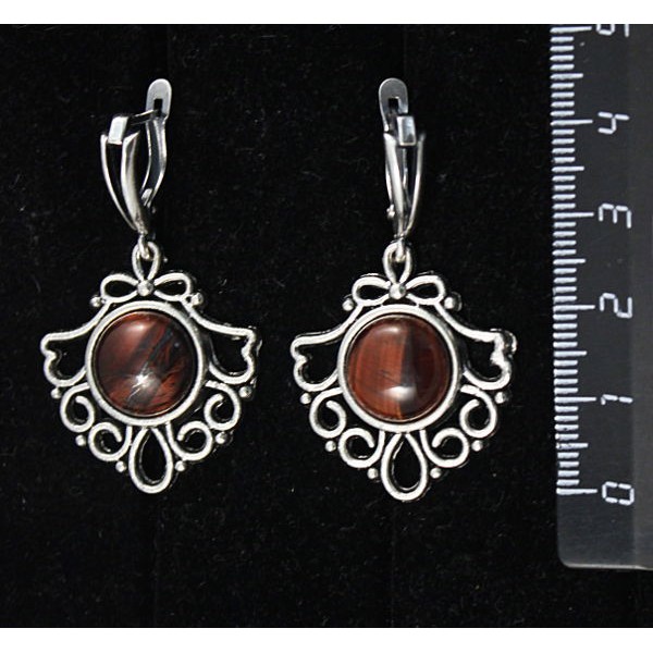 Серьги из бычьего глаза, овал 25х18мм, оправа "медальон", швензы посеребрение