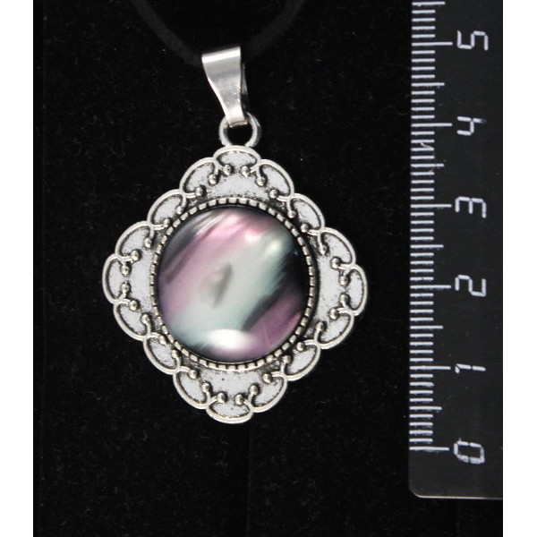 Кулон из перламутра, основа квадрат 30мм, сеттинг круг 20мм