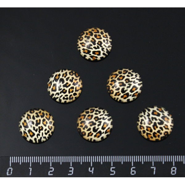 Кабошон пластик круг 18мм, рисунок "леопард", цвет желтый, черный, коричневый