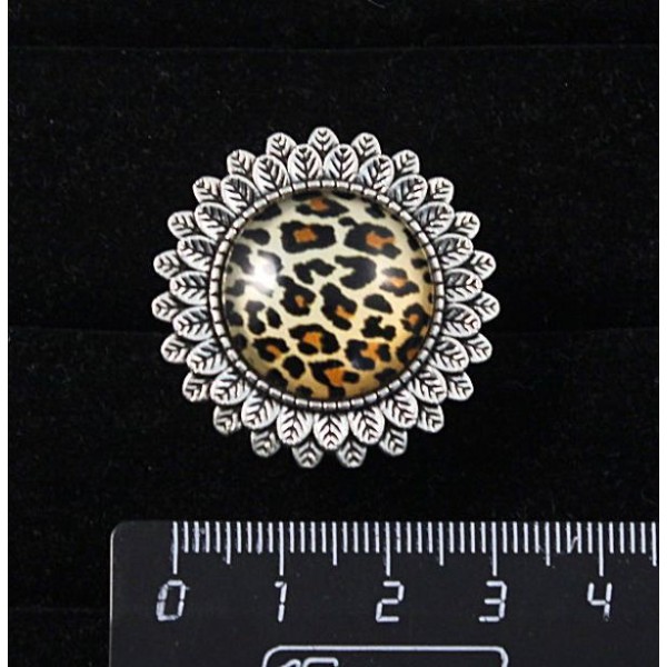 Брошь с кабошоном из пластика , рисунок "леопард", основа "подсолнух", круг 20мм
