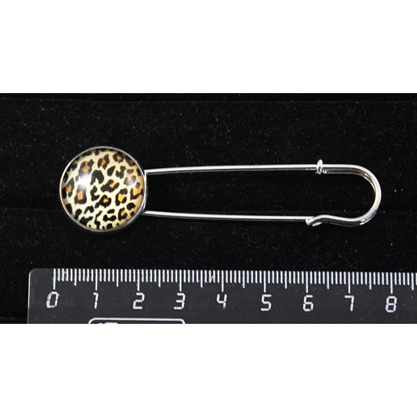 Брошь-булавка с кабошоном из пластика, рисунок лео..