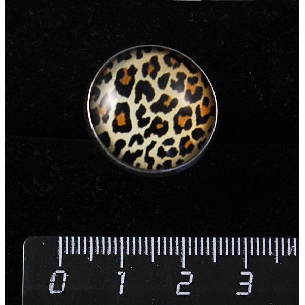Куло с кабошоном из пластика , рисунок "леопард", круг 12мм, "ягодка"