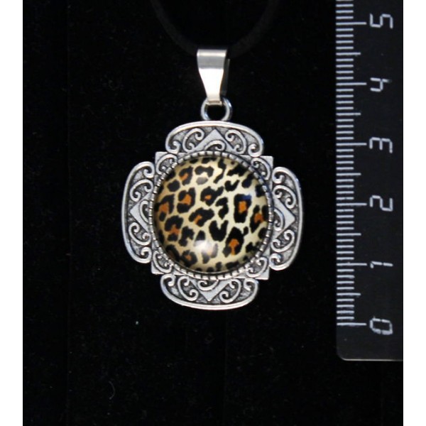 Кулон с кабошоном из пластика, рисунок "леопард", круг 20мм, оправа "4 лепестка"