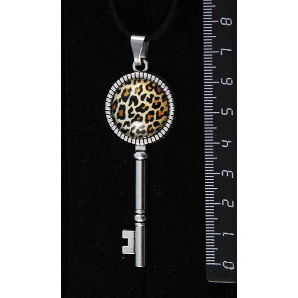 Кулон с кабошоном из пластика, рисунок "леопард", "ключик", круг 20мм