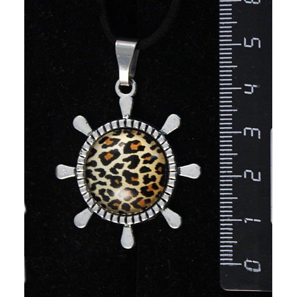 Кулон с кабошоном из пластика, рисунок "леопард", "штурвал", круг 20мм