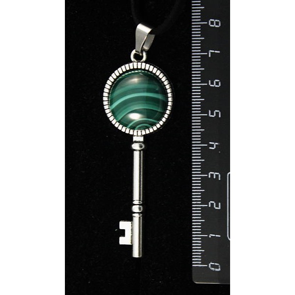 Кулон из малахита, "ключик", круг 20мм