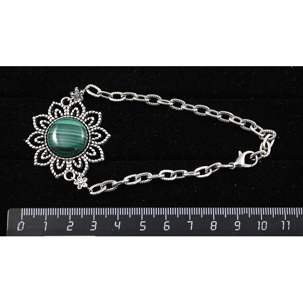 Браслет из змеевика, "цветок", круг 18мм, на цепочке