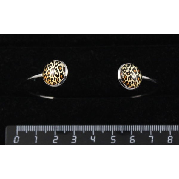 Браслет с кабошоном из пластика, рисунок "леопард", 2 круга 12мм, жесткая основа