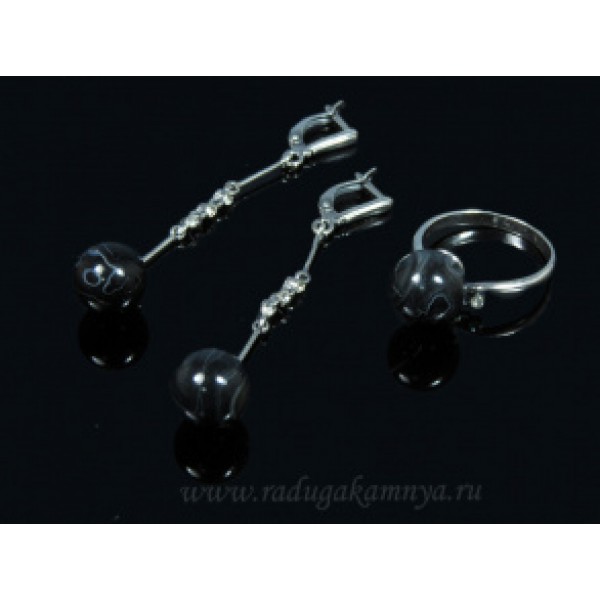 Кольцо и серьги с агатом