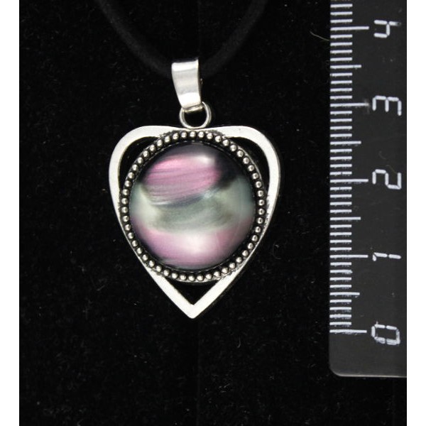 Кулон из кошачьего глаза (синт.), круг 18мм, оправа "сердечко", цвет сиреневый