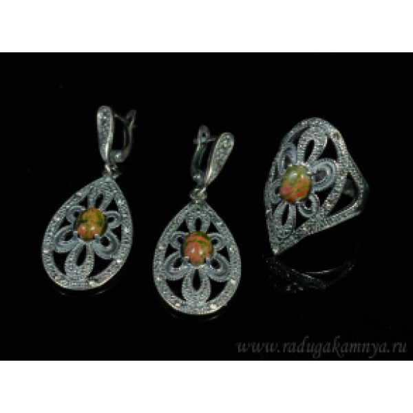 Кольцо и серьги унакит