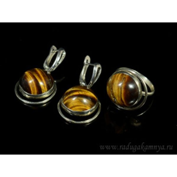 Кольцо и серьги тигровый глаз круг