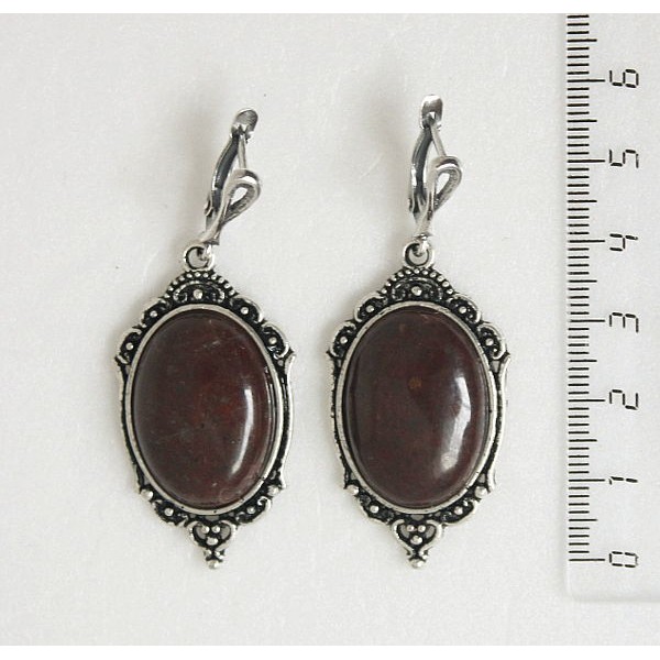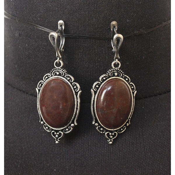 Серьги из яшмы красно-коричневой, овал 25х18мм, оправа "медальон", швензы посеребрение