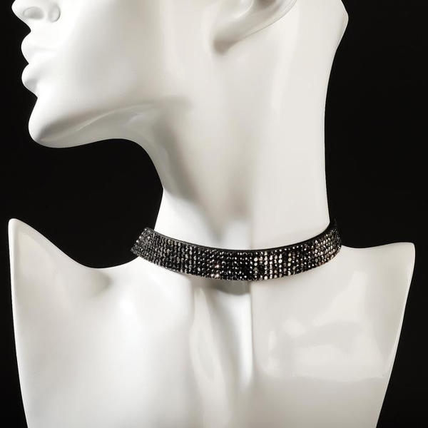 Ожерелье на струнке "Грация искр", тонкий, цвет черно-серебряный, L=30 см