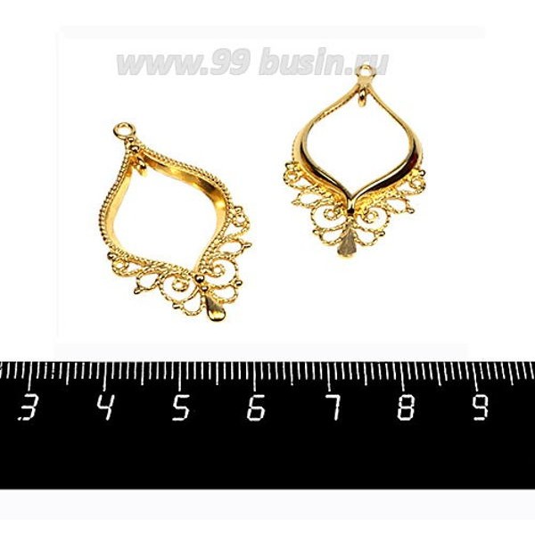 Подвеска-коннектор Филигрань 37*21 мм, позолота 0,45 мк, 1 штука, производство РОССИЯ