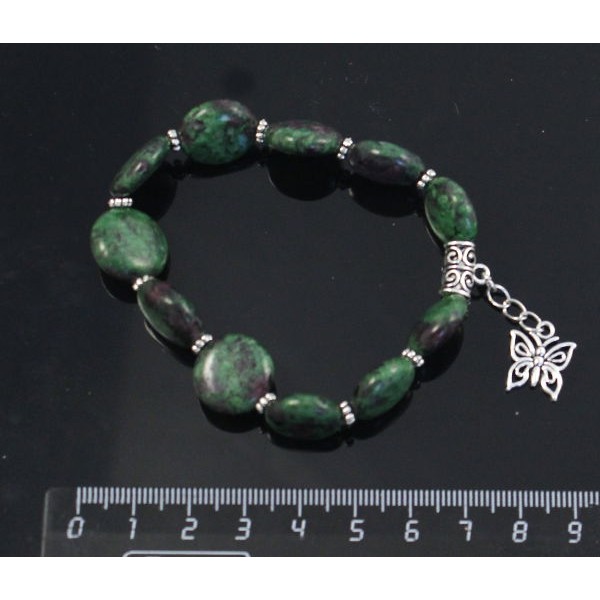 Браслет из цоизита с рубином, шарик 10мм, с под..