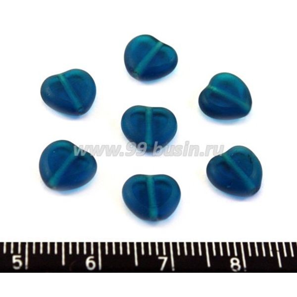 Бусина стеклянная Сердечко 8 мм цвет "темная морская волна", плоское прозрачное, 7 шт/упак ЧЕХИЯ