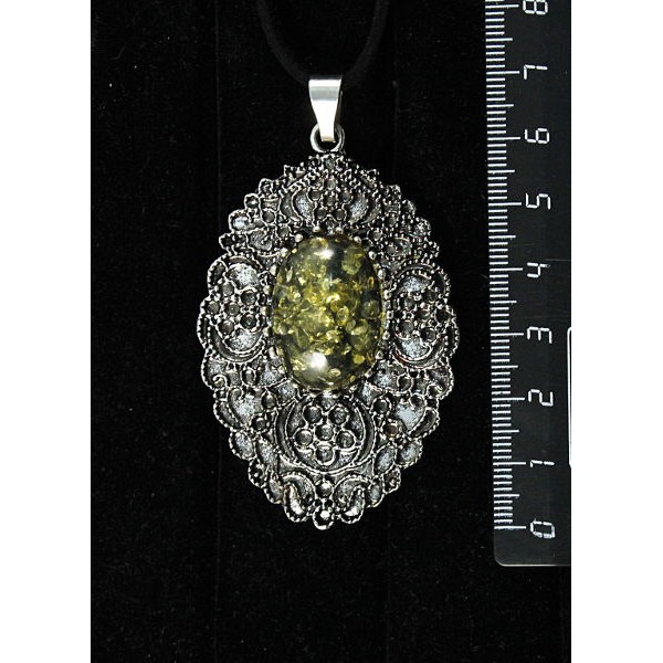 Кулон из янтаря иск., цвет зеленый, овал 25х18мм, филигрань