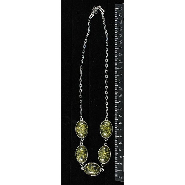 Колье из янтаря иск., цвет зеленый, "5 овалов", камень 25х18мм