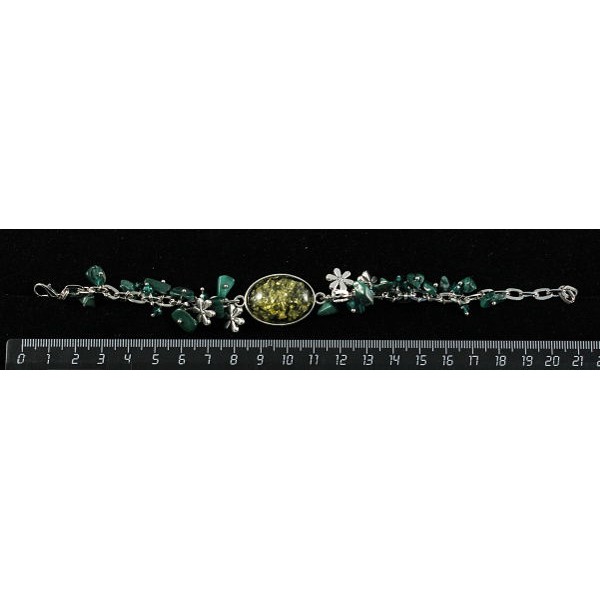 Браслет из янтаря иск., цвет зеленый, овал 25х18мм, + галтовка малахит