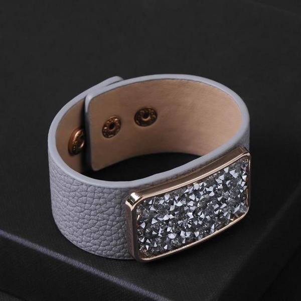 Браслет кожа "Каменная роскошь" россыпь, цвет белый, цвет серебристый (искусственная кожа, стразы, бижутерный сплав)
