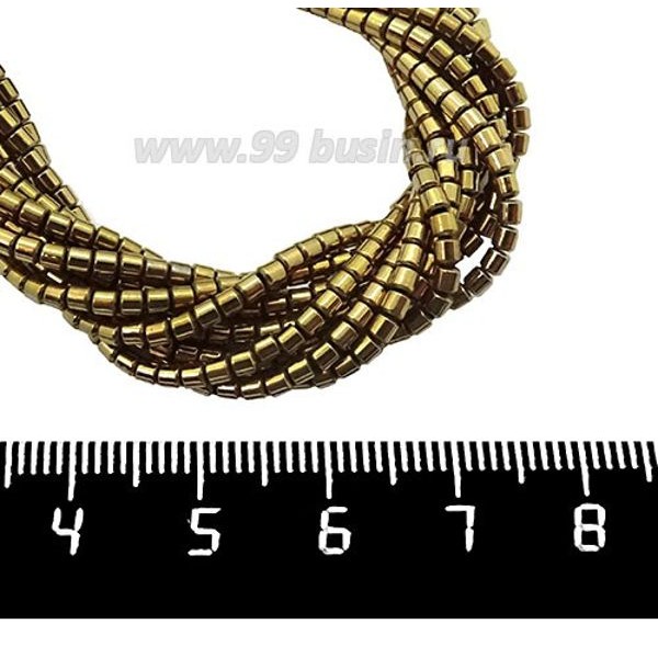 Натуральный камень ГЕМАТИТ с покрытием под ПИРИТ маленький цилиндрик 2*2 мм, цвет темное античное золото, 40 см/нить
