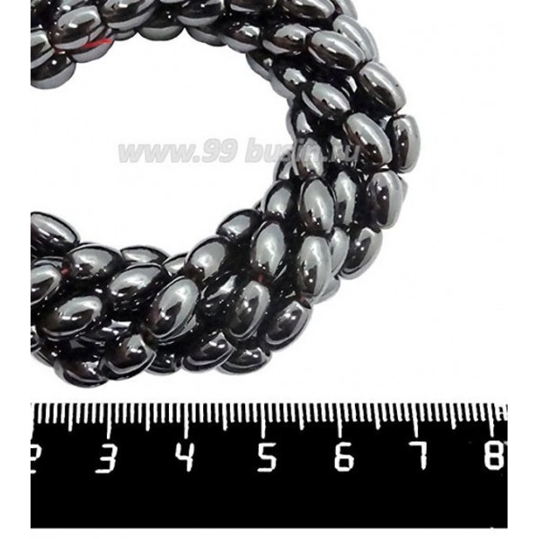 • Натуральный камень ГЕМАТИТ с покрытием под ПИРИТ крупный рис 8*5 мм, цвет натуральный, 20 см/нить